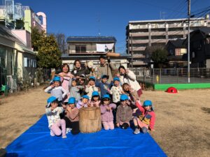 その後、第二園庭で恒例の餅つき大会です!