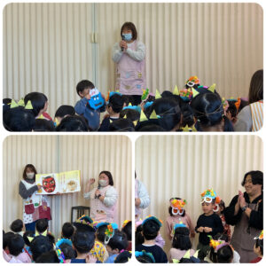 先生達は豆まきの絵本を読んでくれました♬