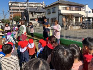 みんな急いで第二園庭まで避難して、消化活動を行いました。